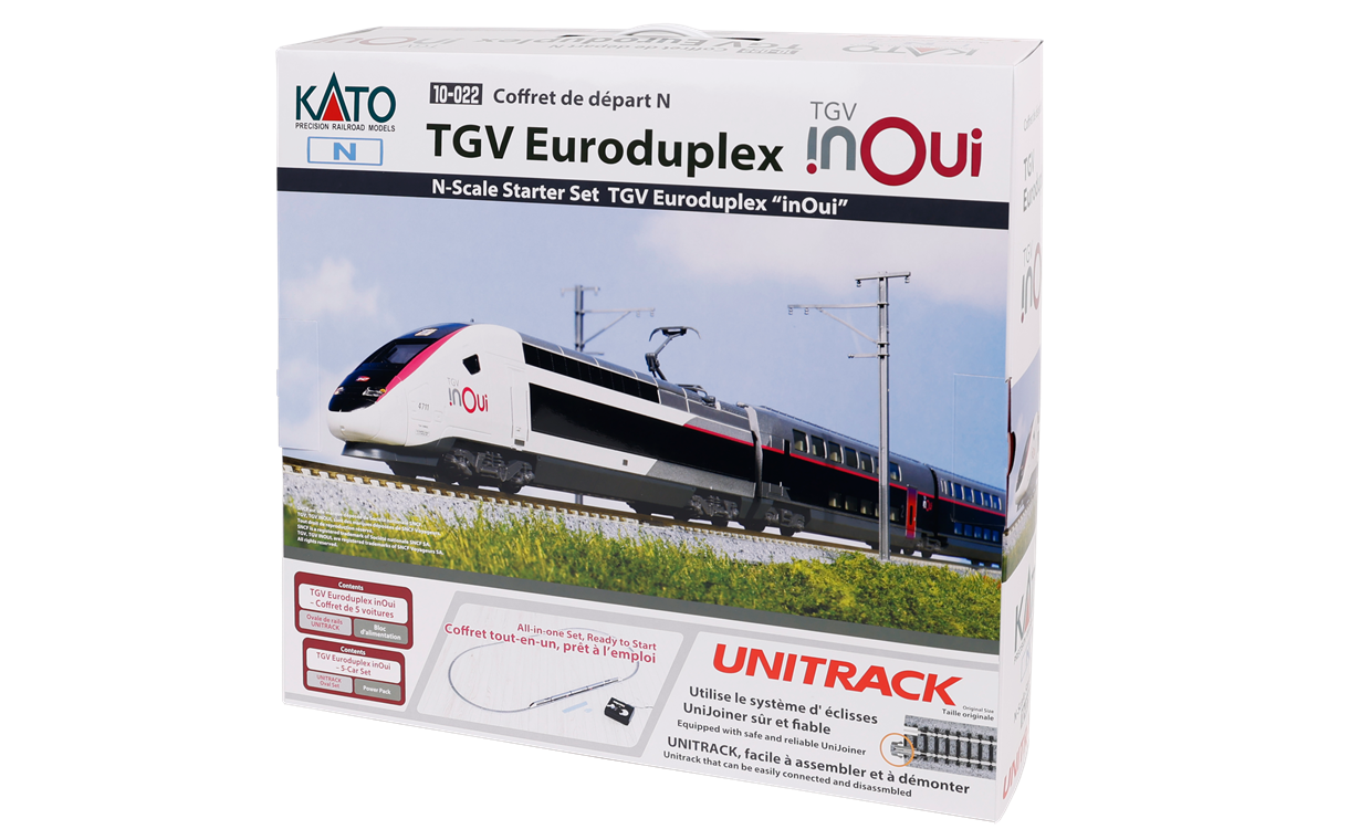 This starter set combines the TGV “inOui” Euroduplex model set with a full loop of UNITRACK and a KATO Standard Power Pack SX. It is the ideal choice for anyone wanting to start running model trains!